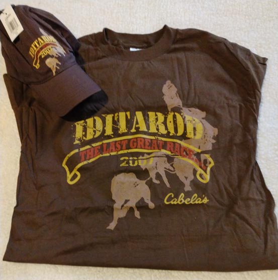 A must have for Iditarod Race fans. Cabelas 2007 Iditarod hat and large (unisex) brown long-sleeve T-shirt. New with tags.