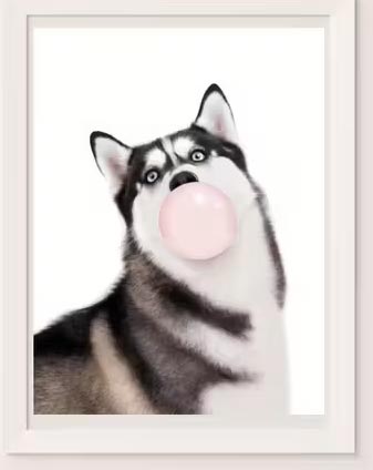 Husky with Bubble Gum, just a bit more than 12" x 16" . Canvas art, it has no frame and will be shipped rolled.