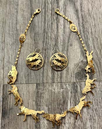From Wild Bryde - a pack of wolves parades around your neck, with a pair of matching earrings.