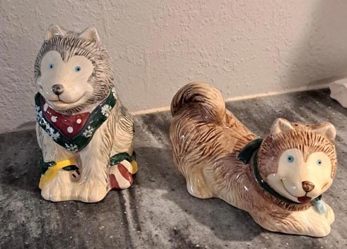 These charming shakers are designed by Debbie Mumm as part of her "Winter Follies" series for Sakura. Made of high-quality, hand-painted ceramic, characteristic of the Sakura line.