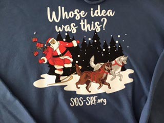 This handsome, size Large, hooded sweatshirt is new and unused from a previous SOS-SRF campaign. If you didn't see it then, here is your chance to own a great shirt, in a great color and help a future Siberian Husky or mix who may be in distress somewhere. It is sweatshirt weather.