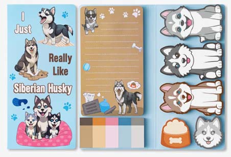I REALLY LIKE SIBERIAN HUSKIES. This cute little book contains the following sticky notes: