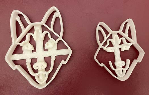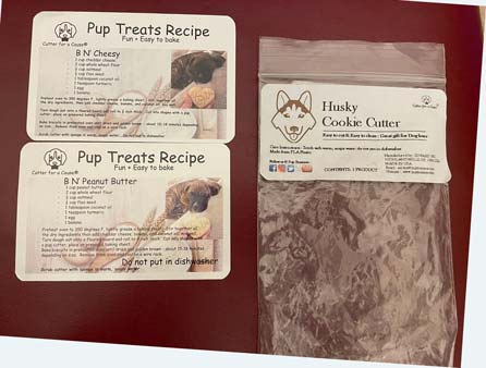 The cookie cutters are made of plastic and come with recipes. One cutter is 4" x 4" and the other is 3" x 3".