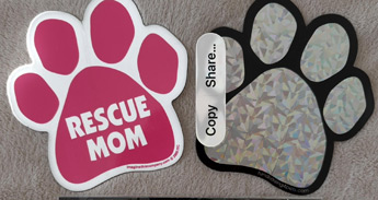 - A big pink paw print shows you are a Rescue Mom.