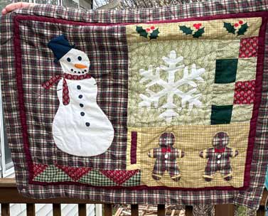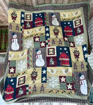Maria won this quilt in an auction a couple of years ago and realized she could not put it on her bed as her digging huskies would destroy it. So, she is donating it to our auction. The quilt is approx. 84" x 84" (very near queen size) and the two matching pillow covers are 21½" x 28½". All are hand made.