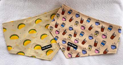 Pink Tongue features tasty tacos on one and hot and cold beverages on the other. A handy snap makes them simple to put on.
