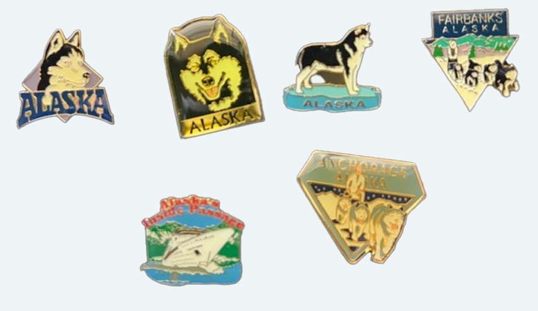 • 2 Alaska pins with huskies