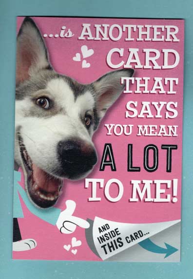 Cute Siberian Valentine's Day card by Hallmark with multiple mini-cards to open on the inside. Outer card measures 5½" wide by 8" tall.